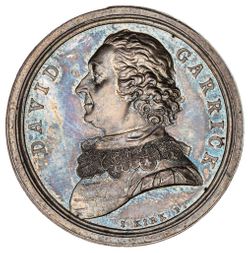 DAVID GARRICK, The English Actor, 1772 in silver (41mm) by Kirk (BHM 161). Attractively toned, good extremely fine and rare.