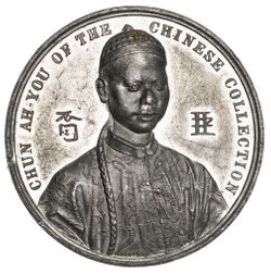 THE CHINESE EXHIBITION, 1843, in white metal (55mm), by T. Halliday, obv. bust of Chun ...
