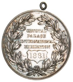 CRYSTAL PALACE INTERNATIONAL EXHIBITION, 1881, in silver (63mm) (BHM 3107), by Pinches and A Fisch, ...