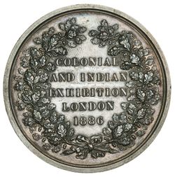 COLONIAL AND INDIAN EXHIBITION, London, 1886, in bronze (52mm) (BHM 3209), by L.C.Wyon, obverse, bare ...