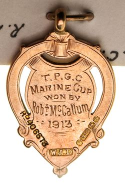 T.P.G.C. (gold) Marine Cup in 9 carat gold (10.02g) 'Won by/Rolf McCullum/1913' by W.J.D. Very fine.