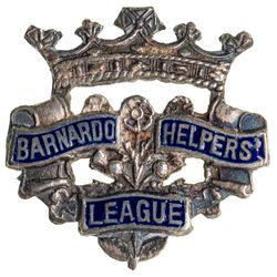 BERNARDO HELPERS' LEAGUE, membership badge in voided silver and enamel (27x27mm), hallmarked for Birmingham 1936 by maker, "A.H.D" (Alfred Horatio Darby), pin-back. Very fine.