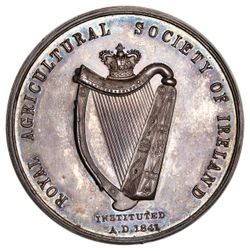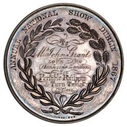 IRELAND, Royal Agricultural Society of Ireland, in silver (51mm) by J. Woodhouse and Jones, Dub. Annual National Show Dublin, 1862 "Mr John Grant/Love/Lane/Bankside London/for Portable Railway/and Turn Tables/1st Class". Beautifully toned, uncirculated.