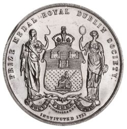 PRIZE MEDAL ROYAL DUBLIN SOCIETY, Spring Show, 1874 in silver (44mm) by Woodhouse RHA "Messrs/Martin/Mahony/2nd best/Irish Tweeds". Good extremely fine.