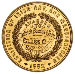 IRELAND, Exhibition of Irish Art, and Manufactures, 1882, in gilt bronze (51mm) by Woodhouse, 'Patrick Bourke & Son/Class C/Section XVI'. Edge bruise and test marks on edge, otherwise good extremely fine.