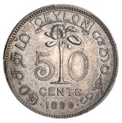 CEYLON, British Administration, Queen Victoria, silver fifty cents, 1899 (KM.96). Nearly uncirculated.