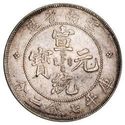 CHINA, Empire, Yunnan Province, silver dollar (1908) (KM.Y.254). Very fine.