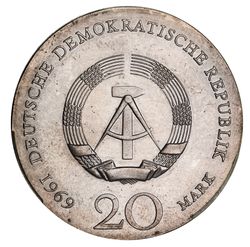 GERMANY, Democratic Republic, silver twenty marks, 1969, 220th Anniversary of the Birth of Johann Wolfgrang ...