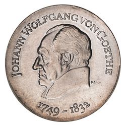 GERMANY, Democratic Republic, silver twenty marks, 1969, 220th Anniversary of the Birth of Johann Wolfgrang von Goethe (KM.25). Uncirculated.