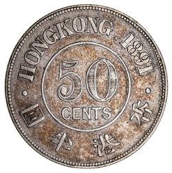 HONG KONG, Queen Victoria, silver fifty cents, 1891 H (KM.9.2). Very fine.