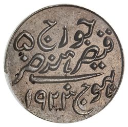 INDIA, Princely States, Kutch, Khengarji III, silver kori, VS 1979 (1923 AD) (KM.Y.59). Uncirculated.