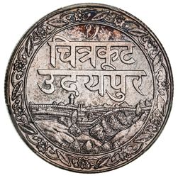 INDIA, Princely States, Mewar, Fateh Singh, silver rupee, VS 1985 (1928 AD), thick characters, Calcutta ...