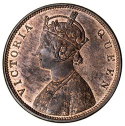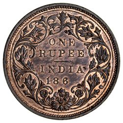 INDIA, British, Queen Victoria, pattern one rupee, 186-(1860) Calcutta mint, in copper plain edge (KM.Pn 25; Pr 46). Brown and red uncirculated and extremely rare.