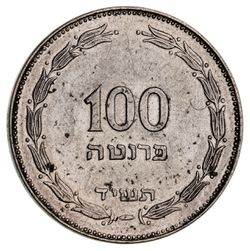 ISRAEL, Republic, nickel clad steel 100 prutah, 1954, greater space between wreath and rim (KM.19). Nearly extremely fine, rare.