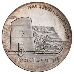 ISRAEL, Republic, silver five lirot, 1963 (15th Anniversary of Independence - Seafaring) (KM.39). Uncirculated.
