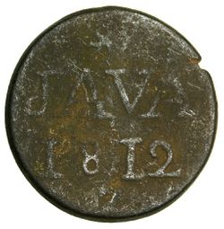 JAVA, British East India company, base metal issues, copper doit, 1812B (Mumbai); tin doit, 1813 ...
