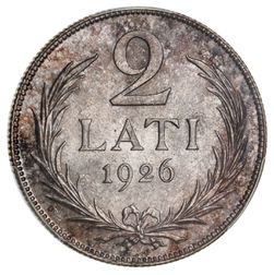 LATVIA, Republic, silver two lati, 1926 (KM.8). Uncirculated.