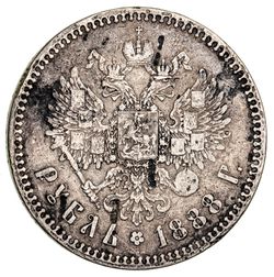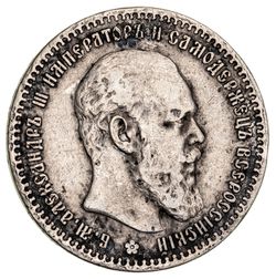 RUSSIA, Empire, Alexander III, silver rouble, 1888 (KM.Y.46). Patchy toning, surface marks, nearly very fine. ...
