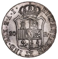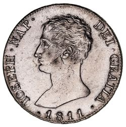 SPAIN, de Vellon coinage, Joseph Napoleon, silver twenty reales, 1811AI Madrid Mint (KM.551.2). Attractive brightness, extremely fine and rare.