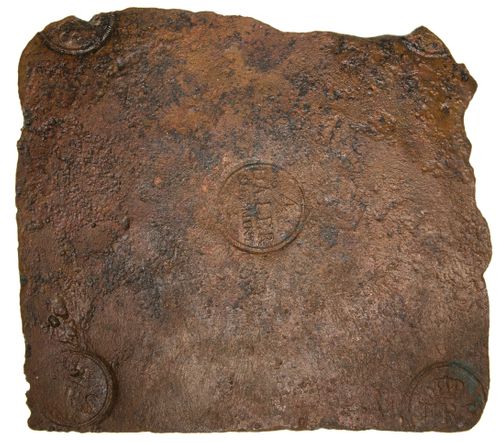 SWEDEN, Frederick I, copper plate money, four daler, 1734, (KM.PM74), salvaged from the wreck of the Nicobar. Corrosion and edge chipping, nearly very fine and scarce.