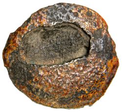 Ex Alan McRae Collection with his display ticket.^^The discolouration on the underside is traditionally attributed to the addition of egg yolk and chicken blood to the mould before casting. Recent work suggests the application of gold leaf may instead have achieved this finish.