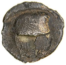 THAILAND, Thai Kingdoms, (17th-19th centuries), debased silver tok chiangmai (pig mouth or oyster money), (63.18g), three circular countermarks on either side of the aperture, blackened top and yellowish-brown underside (cf Mitch 2800). Very fine as cast.
