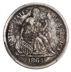 USA, SILVER DIME, 1864-S (KM.92). Very fine.