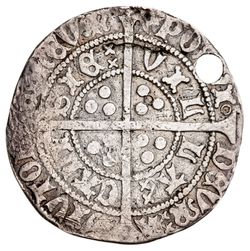 WORLD SILVER COINS, Belgian States, Duchy of Brabant, Charles I, (1467-77), silver double patard or stuiver, (2.74 g) obv. shield quartered arms of Burgundy, +KAROLVS DEI GRA DUX BG BRAB Z LIM, rev. floriate cross, +SIT NOMEN DOMINI BENEDICTVM AM (Gelder Hoc 23.1); England, Henry VI, first reign, (1422-61), silver groat, (3.39 g), annnulet issue, mm unclear, Calais mint, struck 1422-30, (S.1836, holed); Polish-Lithuanian Commonwealth, Sigismund III, (1587-1632), silver three polker, 1620 (KM.41); France, Louis VIII - IX, (1223-1245), billon denier tournois, (0.53 g) (Dy Royales 188); plus heavily clipped unidentified minor silver coin (0.44 g). The second holed, all clipped, fine - very fine. (5)