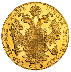 AUSTRIA, Franz Jospeh, four ducats, 1915 restrike (KM.2276). Extremely fine/good extremely fine.