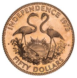 BAHAMAS, Elizabeth II, proof 50 dollars, 1973 (KM.48). With John Pinches case of issue, nearly FDC.