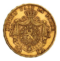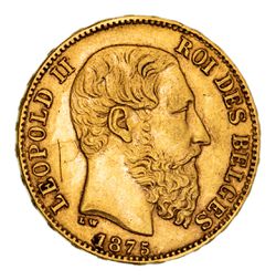BELGIUM, Leopold II, twenty francs, 1875 (KM.37). Good very fine.