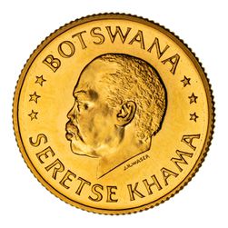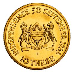 BOTSWANA, silver 50 cents, gold 10 thebe (KM.1, 2). Uncirculated; FDC. (2).