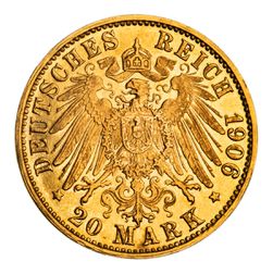 GERMANY, Hesse-Darmstadt, Ernst Ludwig, twenty mark, 1908A (KM.374). Uncirculated.