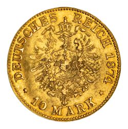GERMANY, Prussia, Wilhelm I, ten mark, 1872A (KM.502). Nearly uncirculated.