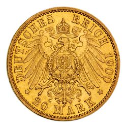 GERMANY, Prussia, Wilhelm II, twenty mark 1900A (KM.521). Nearly uncirculated.