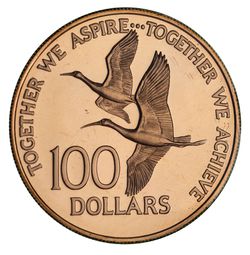 GUYANA, proof 100 dollars, 1976 (KM.46). In case of issue, FDC.
