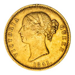 INDIA, British, Queen Victoria, East India Company, mohur, 1841, incuse W.W. (KM.462.1). Rim bruises, otherwise very fine.