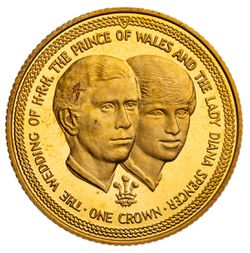 ISLE OF MAN, Elizabeth II, proof crowns, 1981, Royal Wedding (KM 81c) 22 ct. gold. ...