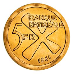 KATANGA, gold five francs, 1961 (KM.2a). Uncirculated.