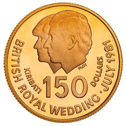 KIRIBATI, Republic, proof 150 dollars, 1981, Royal Wedding (KM 11). In Royal Mint case of issue, FDC.