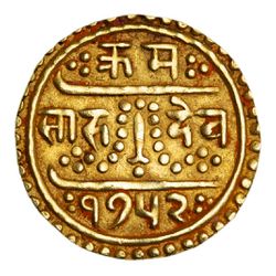 NEPAL, Kingdom, Prithvi Bir Bikram (1881-1911), gold mohar (5.50g), SE 1825 (KM.673.1). Nearly uncirculated.