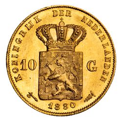 NETHERLANDS, William III, ten gulden, 1880 (KM.106). Nearly uncirculated.