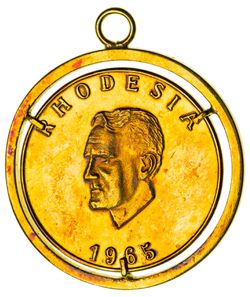 RHODESIA, .750 (18 carat) fine gold medal, 1965, Ian Smith (38mm), set in a clip ...