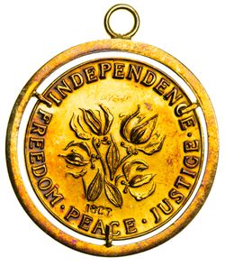 RHODESIA, .750 (18 carat) fine gold medal, 1965, Ian Smith (24mm), set in a clip surround mount (14.69g). In case of issue, uncirculated.