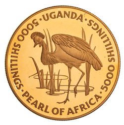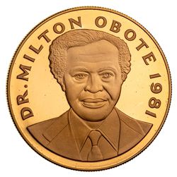 UGANDA, Republic, proof 5000 shillings, 1981, wildlife, Dr. Milton Obote (KM 25). In case of issue, FDC and rare, mintage of 100.