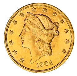 USA, TWENTY DOLLARS OR DOUBLE EAGLE, 1904, Liberty Head. Mint lustre, nearly uncirculated.
