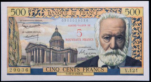 FRANCE, Republic, Bank of France, five, ten, fifty and one hundred new francs; five 12.2.59; ...