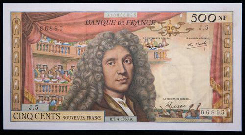 FRANCE, Republic, Bank of France, five hundred new francs, 7.4.60, 86895/J.5; 040886895 (P.145a; F.60.2). Extremely fine.