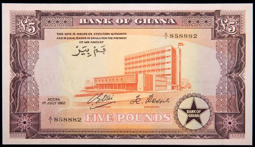 GHANA, Republic, Bank of Ghana, five pounds, 1st July 1962, A/1 858882 (P.3d). Uncirculated.