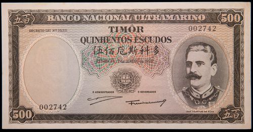 TIMOR, Portuguese Administration, National Bank, 1959 issue, 500 escudos, 2.1.59, 002742 (P.25a); 500 esudos, 25.4.63 ...
